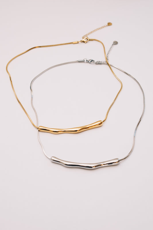 Coulisse Sliding Bar Necklace | Snake Chain | Gold & Steel | Janna Conner