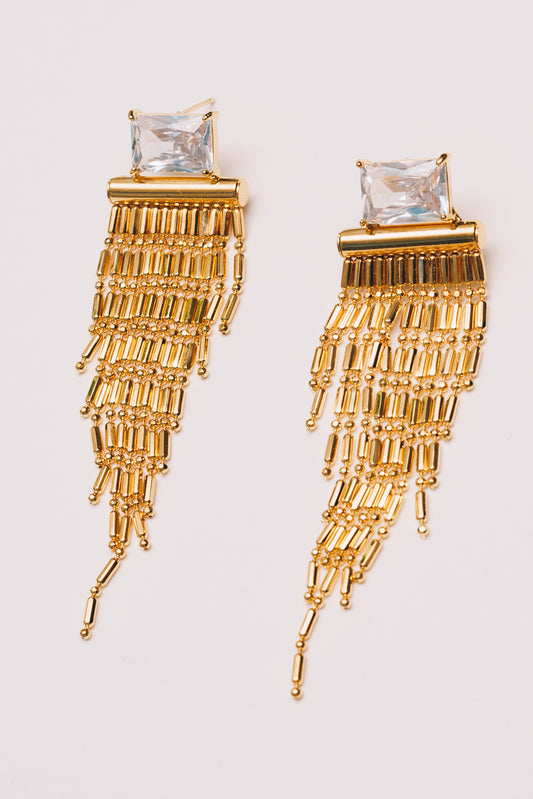 Art Deco Crystal Baguette Fringe Earrings | Crystal CZ | 18K Gold Plating