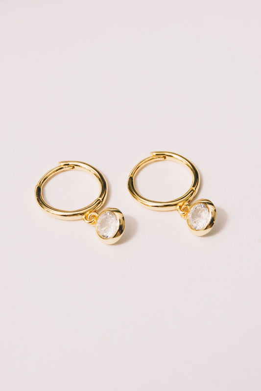 Auberon Crystal Dangle Hoop Huggies | 18k Gold Plating over .925 Silver