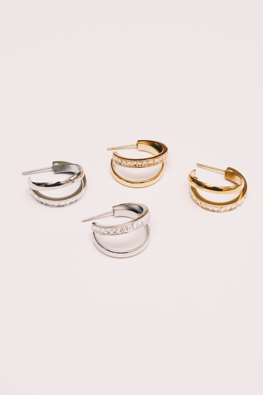 Safiya Split Hoop Earrings | Crystal Encrusted | 18k White Gold Plating