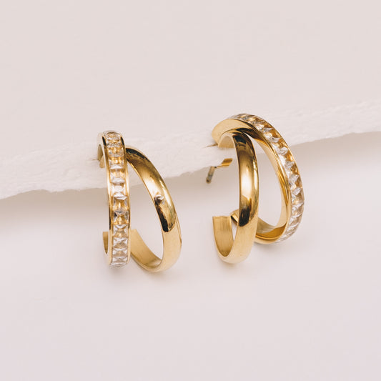 Safiya Split Hoop Earrings | Crystal Encrusted | 18k Gold Plating