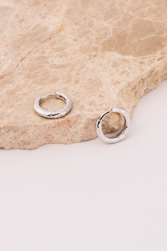 Adin Hammered Huggie Hoops | 14k White Gold
