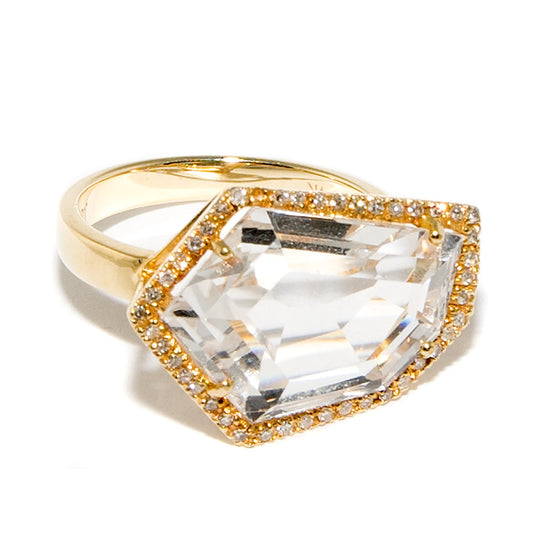 Cubist Cocktail Ring in White Topaz | 14K Gold