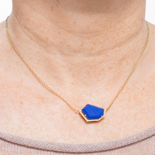 Cubist Necklace | Lapis and Diamond Pavé | 14K Gold