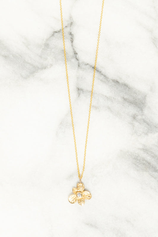 Fleur Necklace | White Sapphire | 14K Gold
