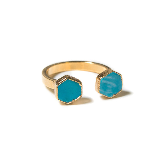 Helki Hexagon Open Ring | Turquoise Howlite | 18k Gold Plating | Sale