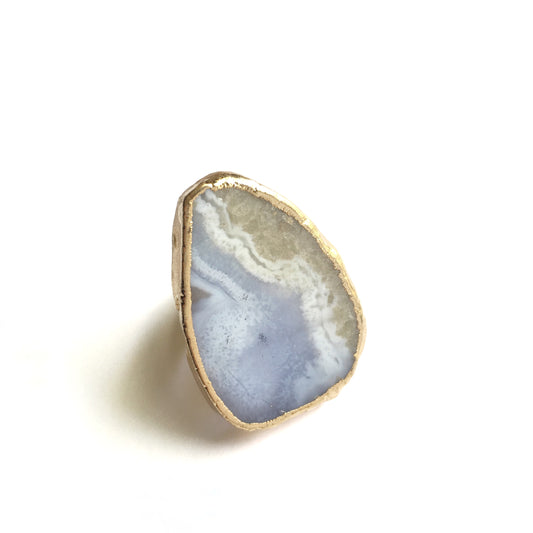 Blue Lace Agate Cocktail Ring | 18k Gold Plating