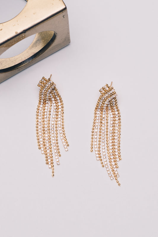 Crystal Chain Party Fringe Earrings | Crystal Cz | 18K Gold PlatingRegular price $45.00Regular priceUnit price / per-