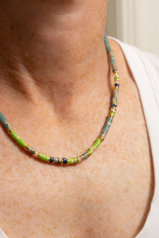Rondelle Bead Necklace | Green/Blue Jasper, Adjustable Length | 18K Gold PlatingRegular price $65.00Regular priceUnit price / per-