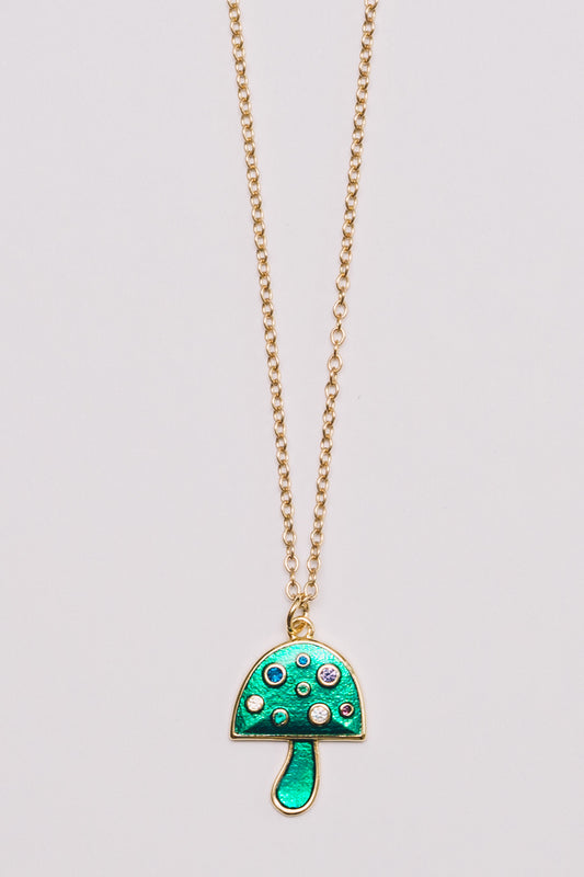 Mushroom Charm Necklace | Enamel with Crystals | 18k Gold PlatingRegular price $45.00Regular priceUnit price / per-