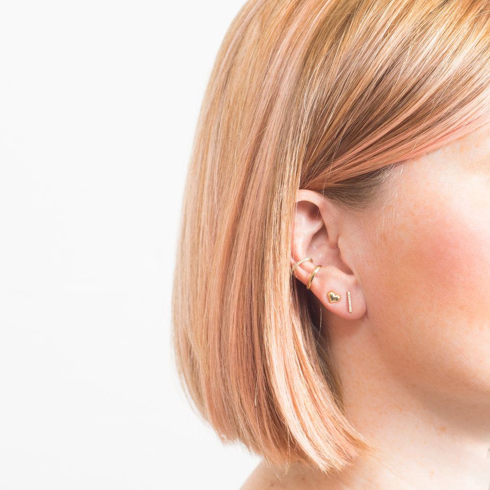 Shown on model with 14k heart diamond 14k ear cuff and 14k gold ear cuff.