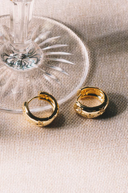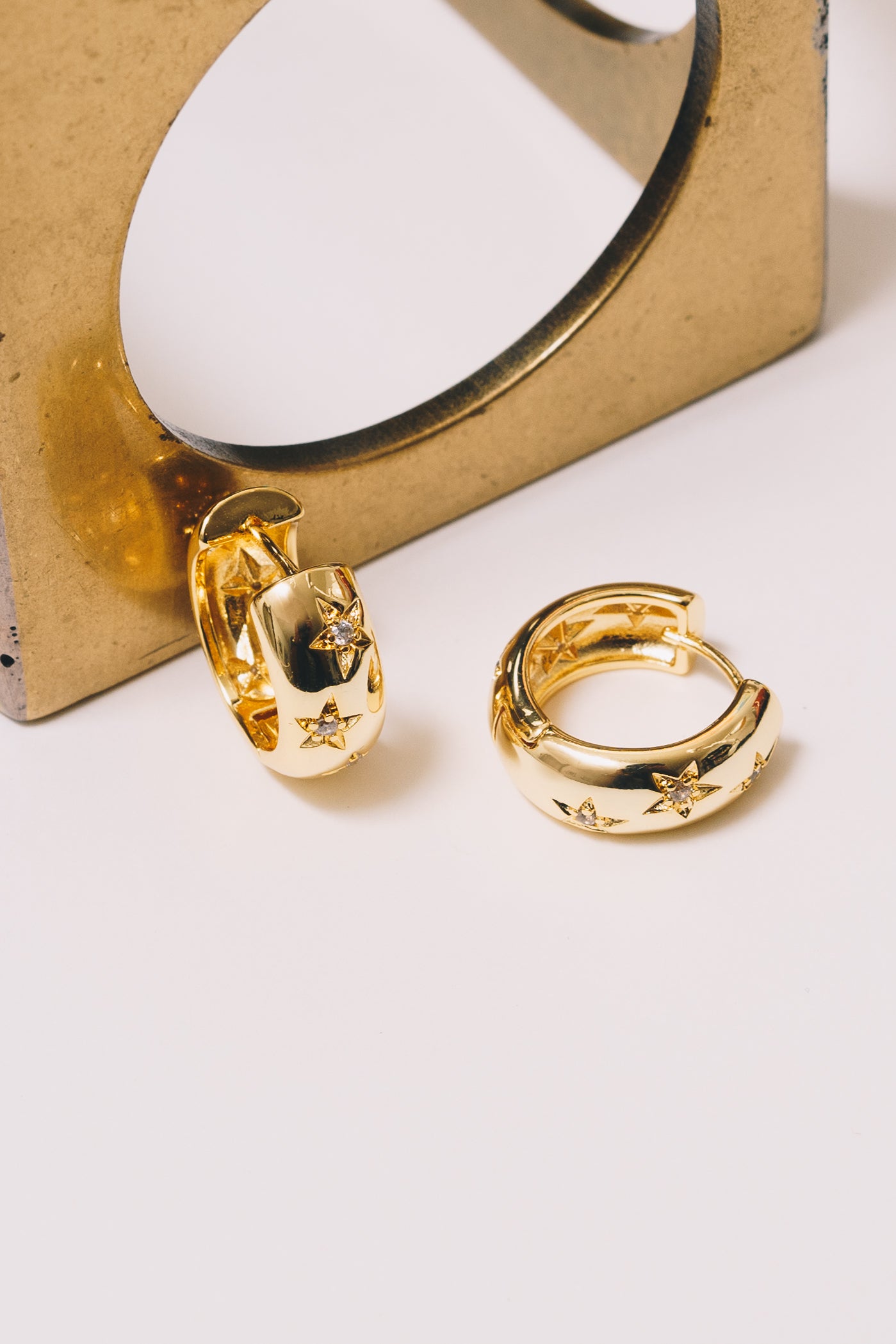 Celestial Hoop Earrings with Stars | 18K Gold Plating