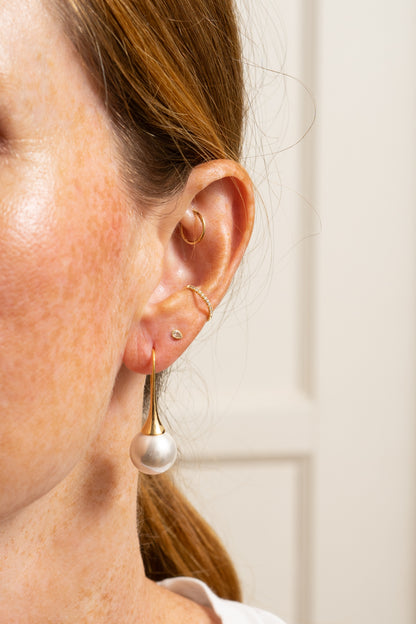 Sleek and chic, these minimal pearl earrings are trendy, yet timeless. Perfect for brides or everyday wear.