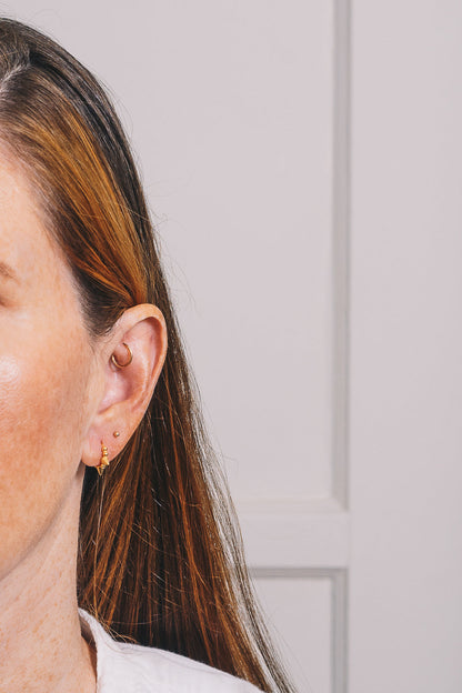 Gold spikes add a little edge to these everyday staple huggie hoop earrings.