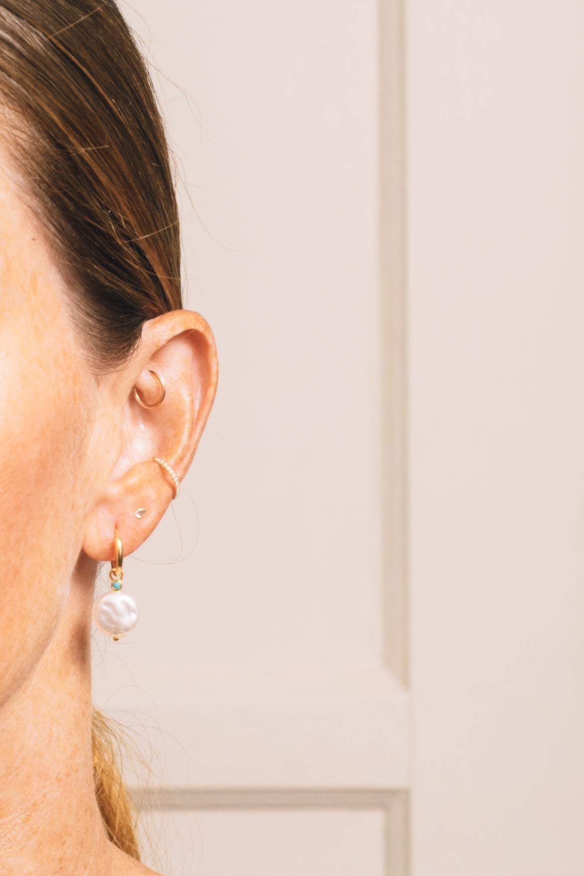 Oriana Pearl and TQ Huggie Hoop Earrings | 18k Gold over .925 Silver