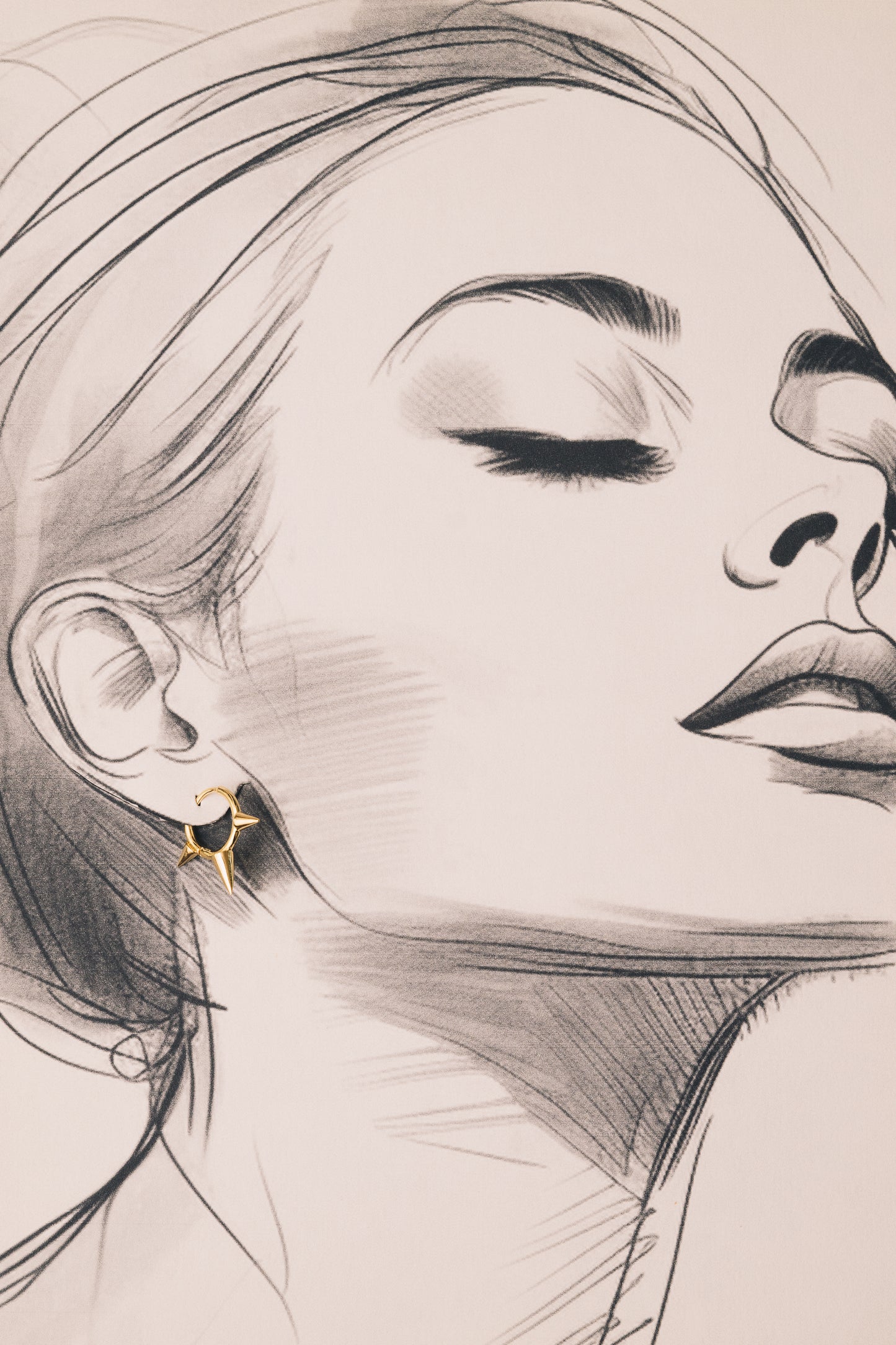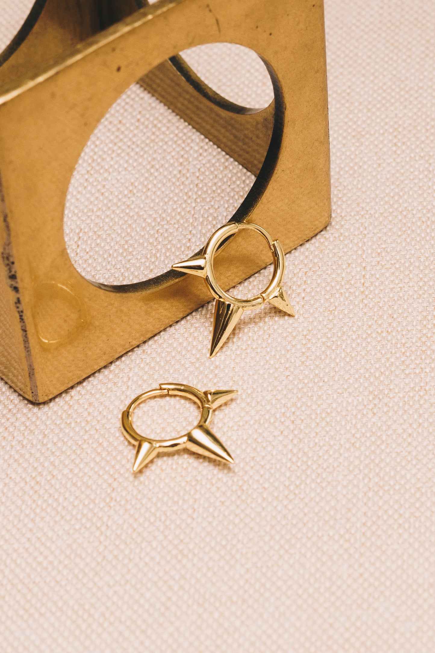 These spike hoop earrings are the perfect way to add a touch of glam to your look. With their shiny gold finish and delicate spikes, they're sure to turn heads wherever you go.
